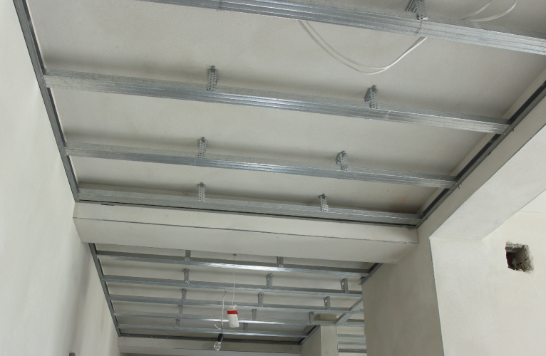 | 軽鉄工事とは | 軽鉄は内装工事のかべ、天井の下地材として使われ、薄い鉄板を形にした材料です |